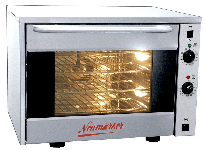 Turbo-Umkehrmotor, Festwasseranschluss, Beschwadung, Grillelement, Gehäuse Edelstahl, Innen Emaille, Ein-/Ausschalter, Zeitschaltuhr 5-120 Min., Kontrollleuchten, Thermostat 0-300°C, Innenbeleuchtung, 4 Einschübe, Innenmaß 450x4