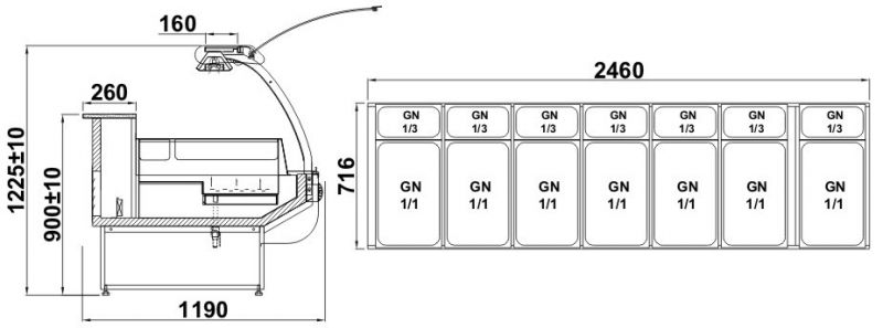 Warmvitrine ALASKA B 2.5-mod, 2460 x 1190 x 1225 +/-10mm