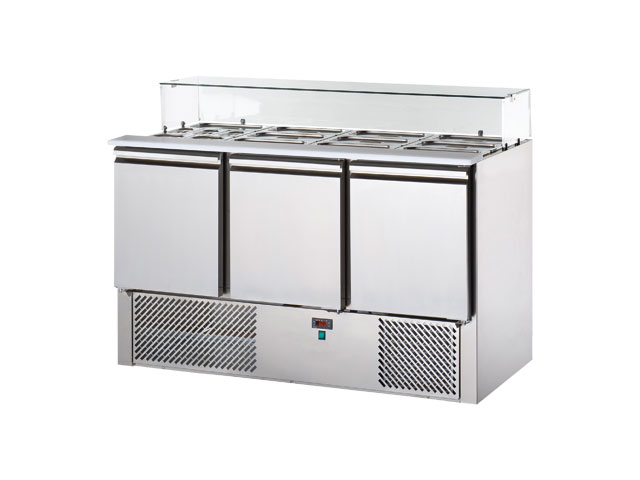 Kühltisch,Saladette, mit Glasaufsatz, 3 Türen, 1380x700x1140mm