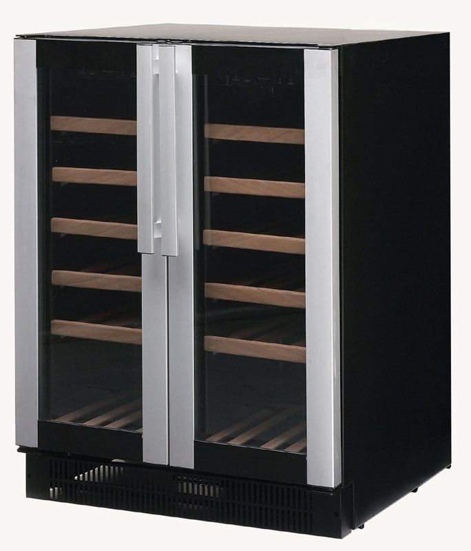 - zwei elektronisch getrennt regalbare Temperaturzonen mit statischer Kühlung und Lüfter für Frischluftzufuhr, sodass der Wein durch seinen Korken atmen und leben kann