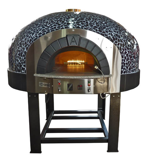 Die Pizzaöfen der Serie „G“ werden mit Gas betrieben. Durch die Kuppelform backen die Pizzen gleichmäßiger und nehmen eine schöne Farbe an. Die Backfläche ist fest montiert und wird durch ein zirkulierendes Lüftsystem auch bei Hochbetrieb in der optimalen Backtemperatur warm gehalten. Die Backfläche kann zudem durch einen Gasbrenner auf der optimalen Backtemperatur gehalten werden. Zusätzlich wird durch das zirkulierende Lüftsystem Gas zurückgeführt und spart somit Energie. Die Temperatur der Backfläche sowie der Kuppel wird durch einen Digitalkontroller kontrolliert.
