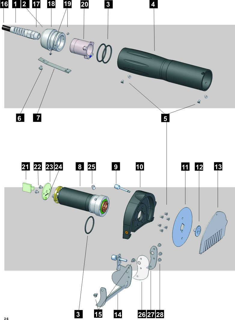 Döner bıçağı mükemmel bir şekilde ele oturmaktadır. Ergonomik sapı,